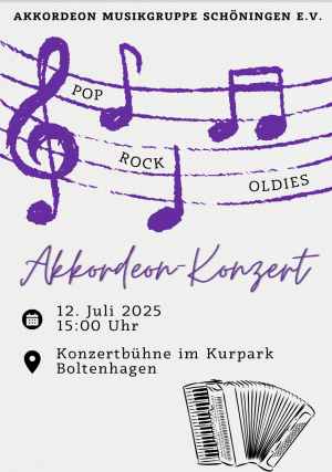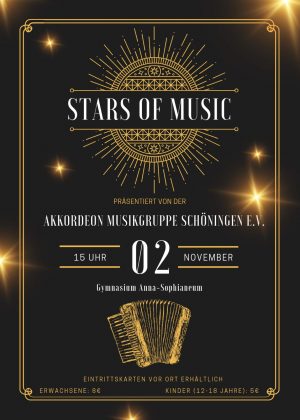 Akkordeon-Musikgruppe präsentiert „Stars of Music“ Zu einer Stern-Stunde mit „Stars of Music“ lädt die Akkordeon-Musikgruppe Schöningen e.V. mit ihrem diesjährigen Jahreskonzert am Samstag, den 2.November um 15 Uhr ins Gymnasium…