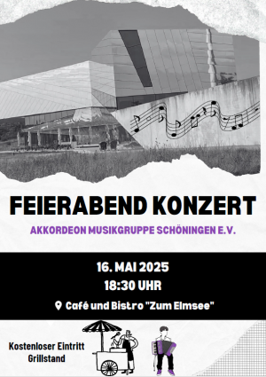 Den Feierabend mit toller Musik, einem schönen Getränk und leckerem Essen gemütlich einläuten. Das bietet die Akkordeon-Musikgruppe Schöningen am Freitag, 16. Mai 2025 ab 18.30 Uhr im Café und Bistro…